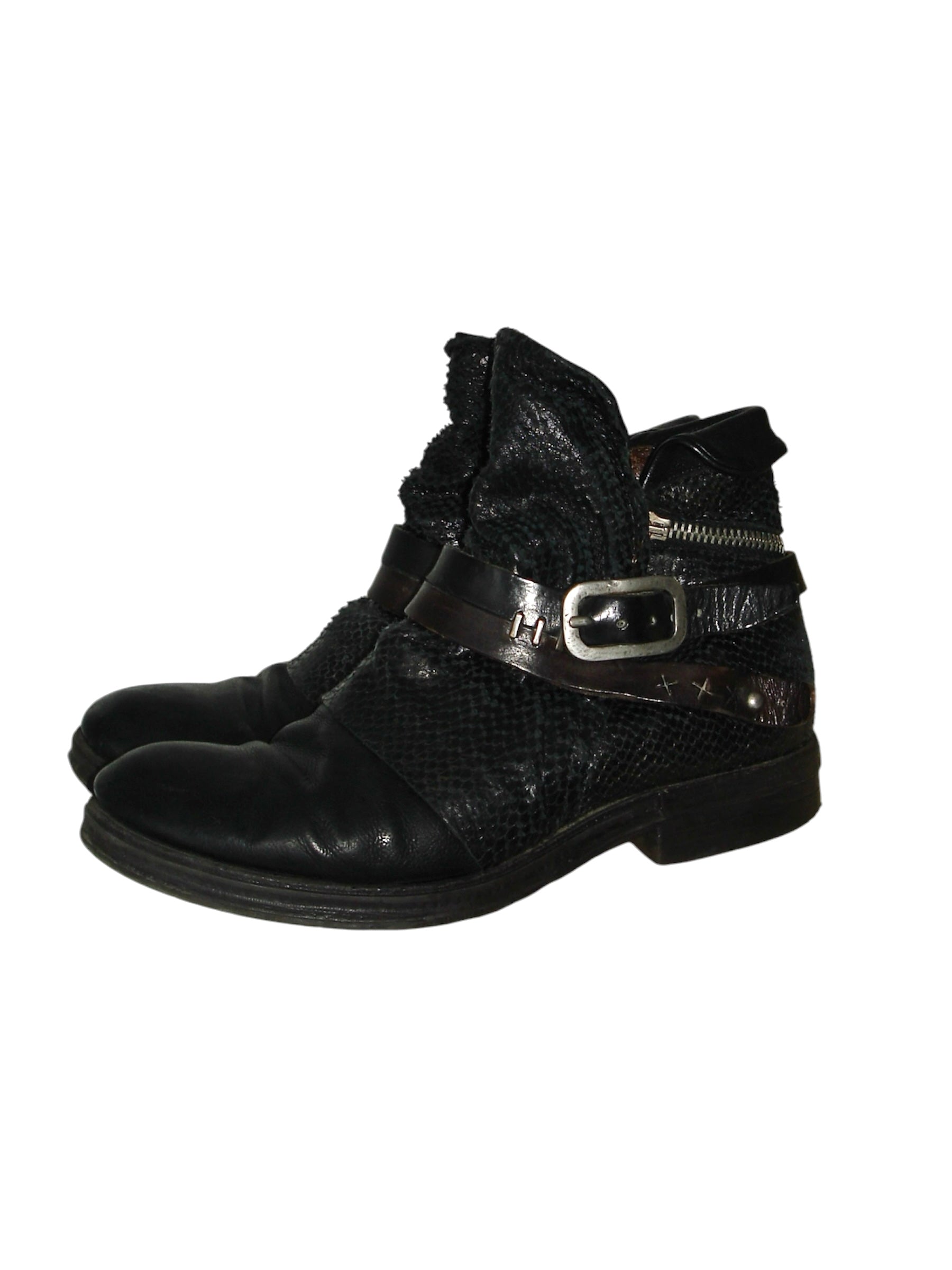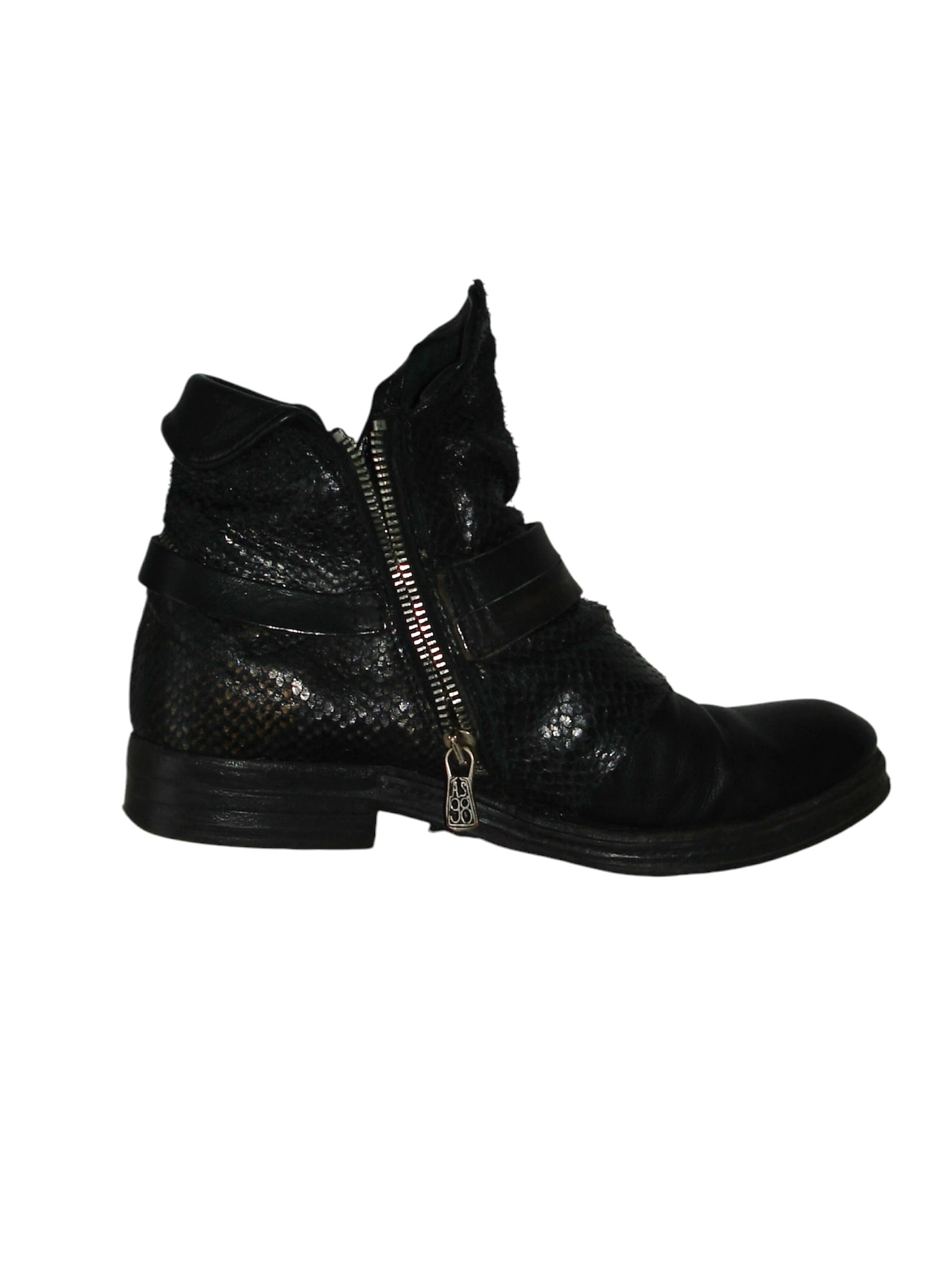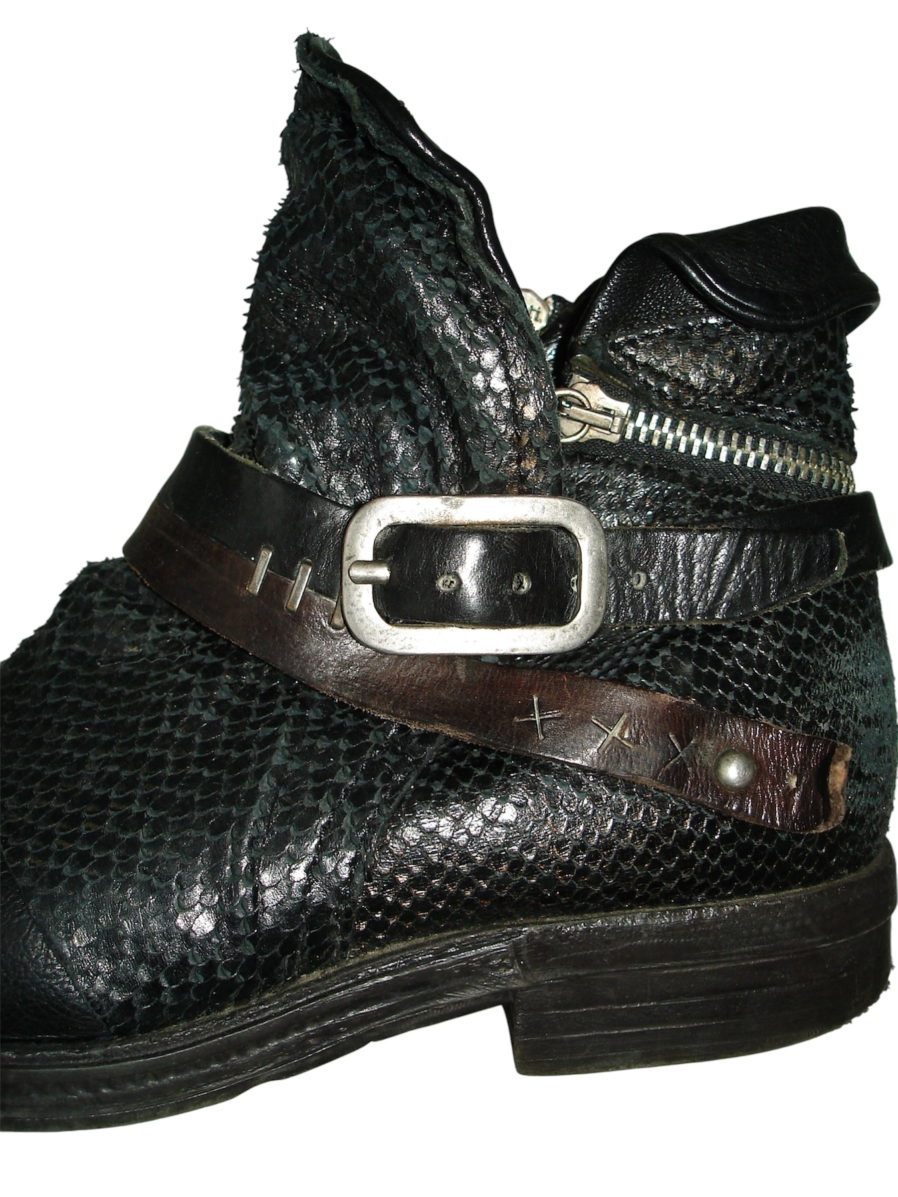 AS98 SNAKE EFFECT LEATHER BELTED BOOTS